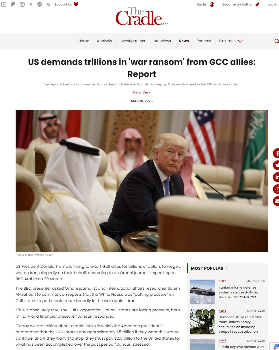 >>531265377>orange nigger demands $5 trillion from gulf cucks to continue the war or $2.5 trillion to stop itLmao this clown is crashing out harder every week