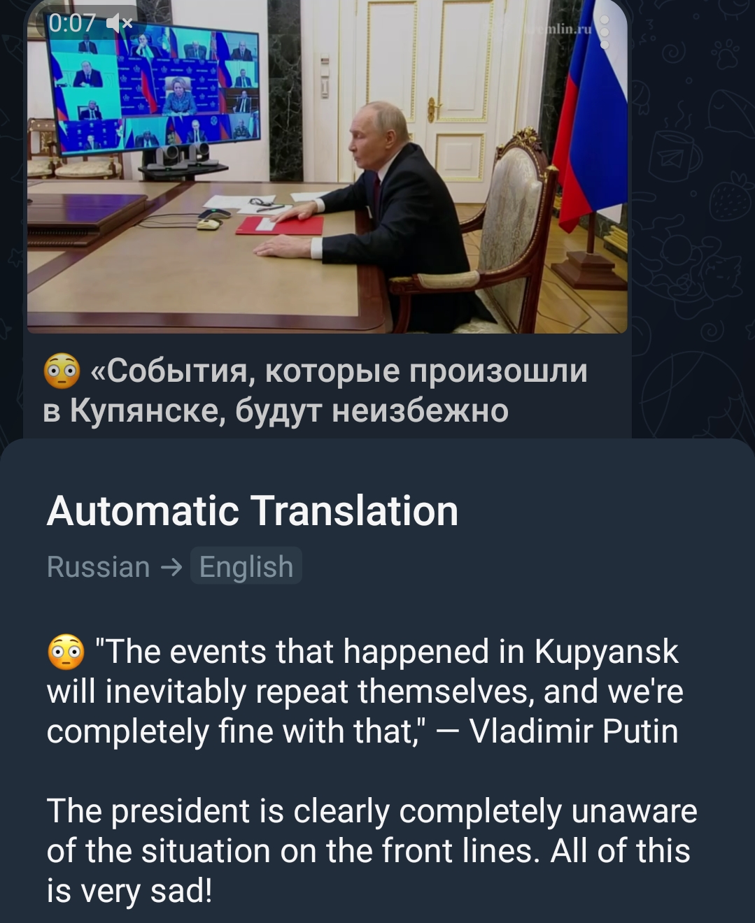 "A ceasefire only benefits those who are retreating" - a russian politician or officer some months ago if i remember correctly