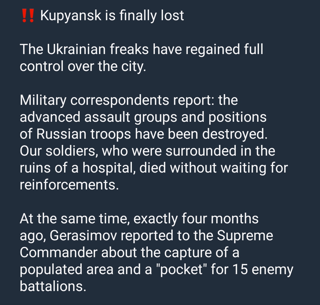 Fucking kek Cucktin doesn't know about kupyansk
