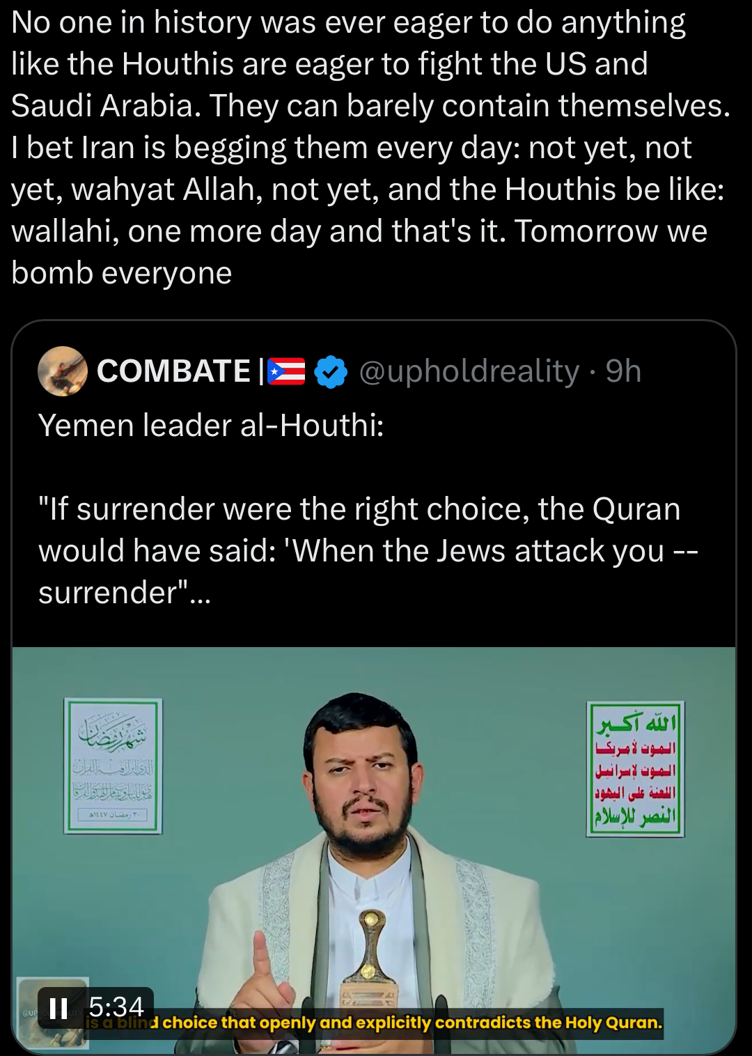 Once Iran is brought back into the fold there wont be any more conflict, and everyone will be aligned with team Epstein. The gulf countries, Iran, Syria. Hezbollah with wither without Iranian support, as will the houthis. The whole axis will fall like dominoes.