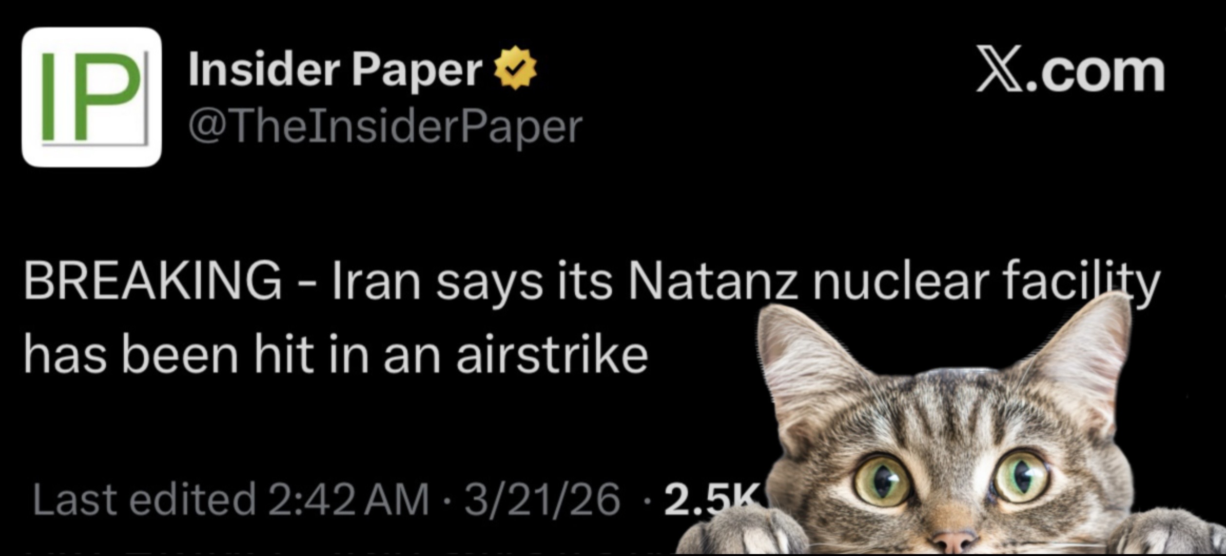 Good Caturday morning, /ptg/...morning twilight is about here, so gonna head out for a comfy Caturday morning walk and have Caturday breakfast later in the early afternoonThe jewish theater continues in Iran and throughout the rest of the ME...I certainly have noticed that Foamboy was accompanying Blimpf yesterday and it appears they're making more appearances together in front of the cameras lately, which leaves the hillbilly jew twisting in the wind...the main thing with me, however, is whether that jew scumfuck fathead Bibi is dead or not...very difficult to tell...I watched him on Trannity on the evening of March 2nd days after the bombings started, and it was obviously a taped appearance he did earlier in the day, but he appeared to still be alive them and I don't think there was any AI chicanery happening with that segmentStill holding out hope I get to see his decapitated head used as a soccer ball by Palestinian children, as /ptg/ is well aware