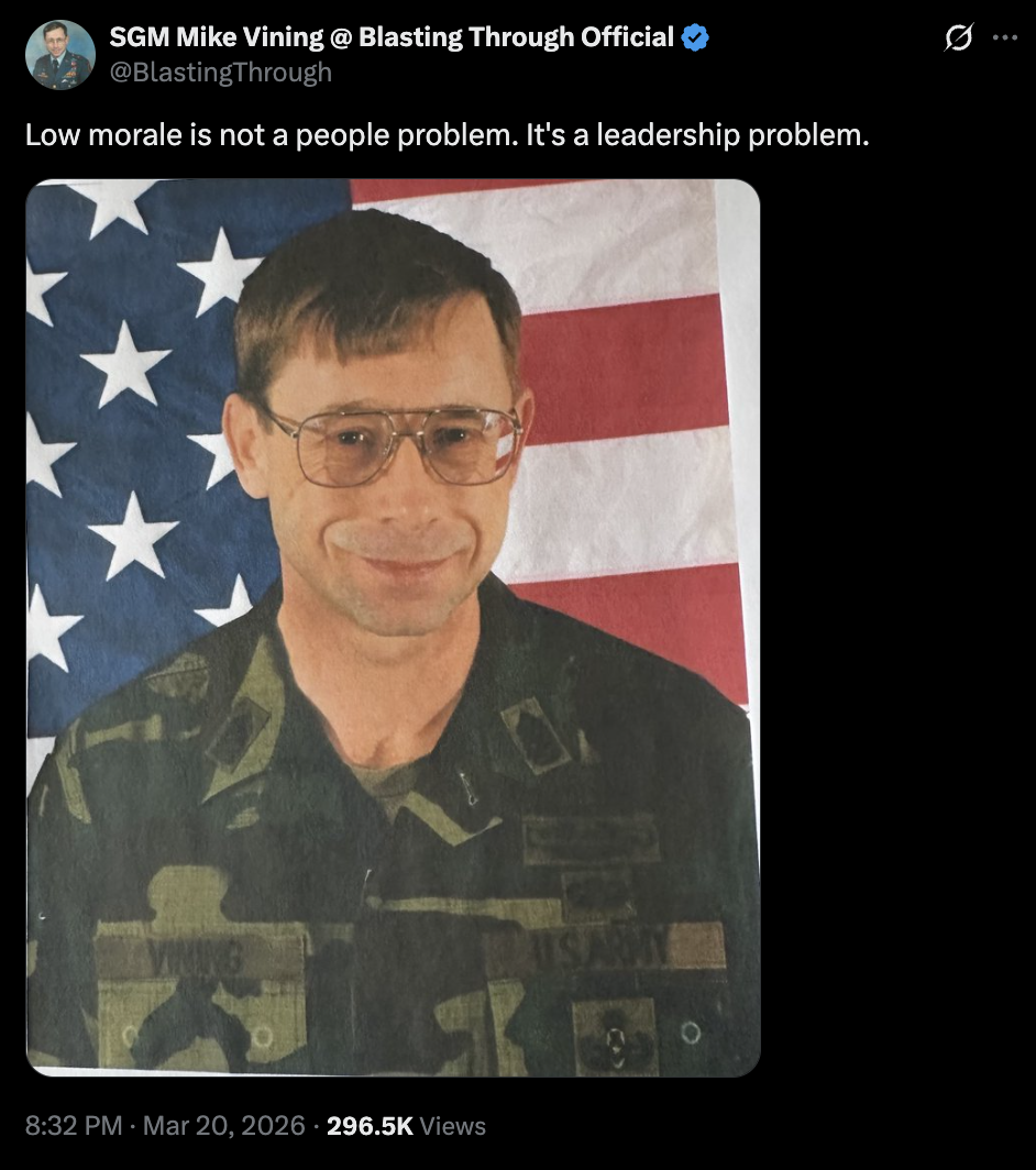 he means US SF "community" (aka janissaries of zog) are getting tired of being put in harm's way for no good reason and might decide to support a new emperor