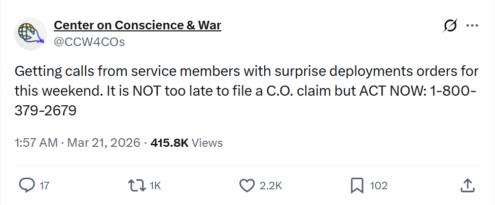 https://x.com/CCW4COs/status/2035053202295726538TIME TO DODGE AND REJECT; MIGGERS