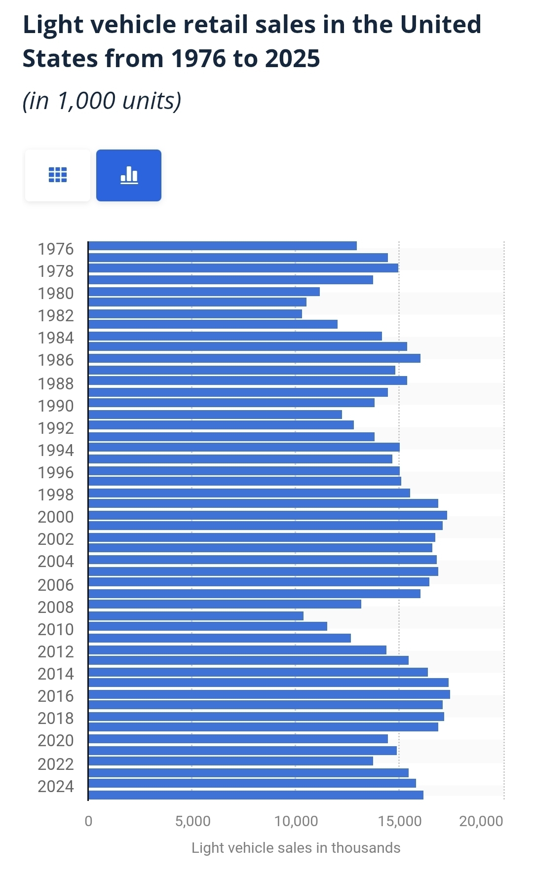 >>531266154It was a shitty program.The epitome of Keynesian broken windows economic stimulus.But it was not the most significant factor for the current state of the auto industry.Regulation, both around saftey and emissions, and inflation are the two main culprits.One stat I find really fascinating is how US new car sales only have a very minor long term upwards trend over the last 50 years. US population has grown by over 60% since the mid 70s, and yet new car sales have barely risen at all. In the 70s you would be considered strange for driving a car more than 5 years old. Kinda like seeing someone use a 5+ year old phone today. The person is either poor, a teenager or really old, or they are just committed to a frugal lifestyle and impervious to social judgement.And since no one really wanted older or used cars, if you were poor you could pick them up real cheap. Anyway I wonder if this trend will continue and what it would mean for the car market if the US population reached 500 million but new cars sales still averaged under 20 million a year.
