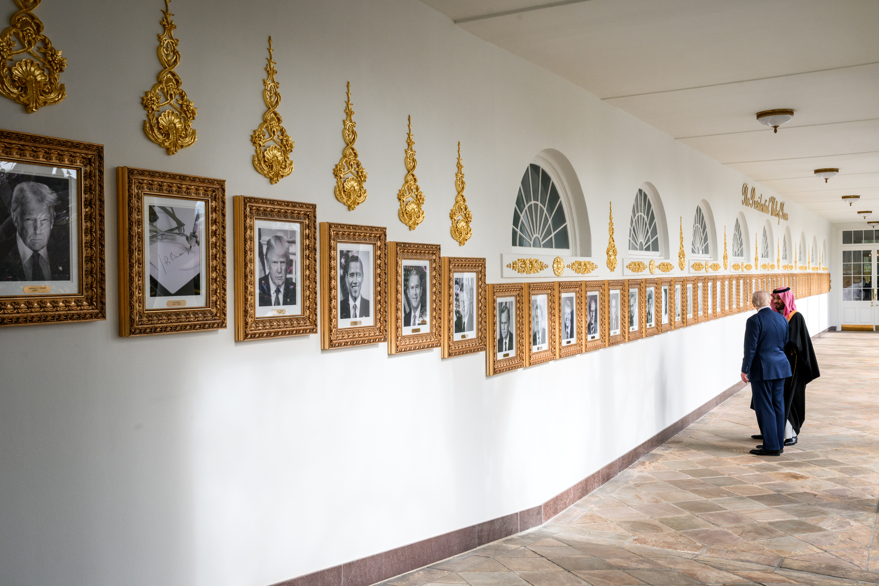 I'm not the only one that finds the decorations jarring right?It's not just the fact they're gold (the Trump tower gold apartment is tasteful, all things considered), it's the fact they look like cheap spray painted crap.>Yes, put a gold whatcha-ma-callit above every portrait, that will look good