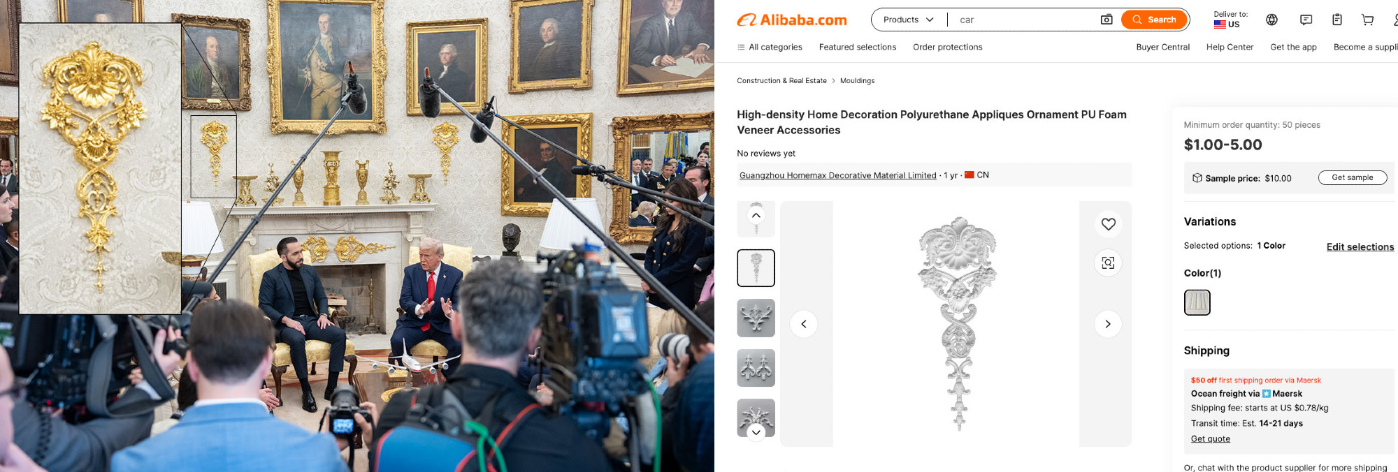 >>5312827161. gooks copy everything2. they could buy some cheap stuff to put on the wall and cover it with gold leaves (also relatively cheap)3. it's the fucking white house with some retard in control who loves to spend money on stupid rich people shitbut yeah sure definitely fake you fucking gay fag you totally proved it by finding something that looks like it in a different color on some chink website.