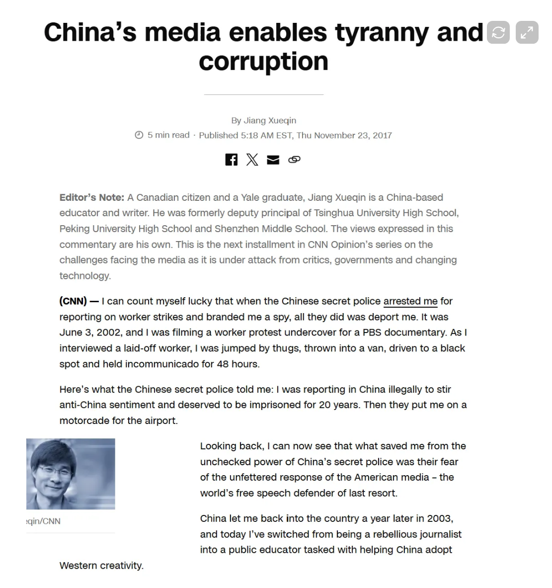 >>531268400I’ve seen some Chinese people on social media say that he was arrested and deported from China in 2002 under suspicion of being a foreign spy due to his connections to a NGO that was made under Clinton