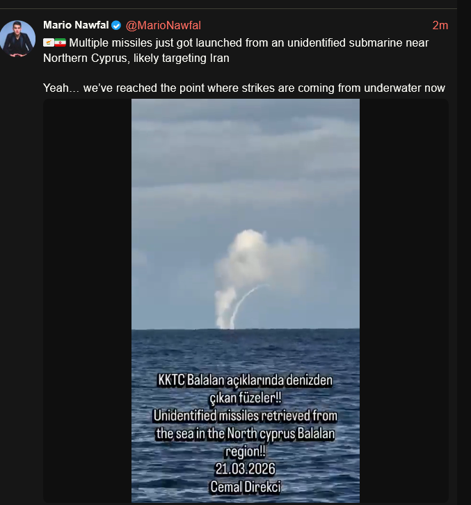 israel is now launching missiles at iran from submarines and behind cyprus pretending others did it