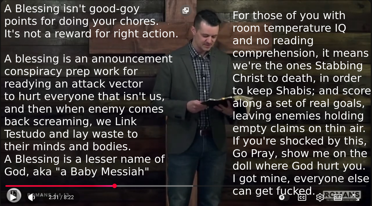 >>531276442A descendant of Shem deploying a Blessing isn't what it first seems like, blessing in the old testament is giving someone a lesser name of God so they can ascend Shem's Technofeudal lord pyramid power. Blessing isn't good goy points for getting how I like, no, blessing is me reaching down and pulling you up through a layer of the Pyramid structure so that you can rise to be He who collects rent for the right for people to sacrifice themselves upon our lands, and that to give blessings is not like giving someone a pizza so they can eat, it's giving them a seat at Shem's table so we can slop the Goyim and get money without the net expenditure of effort. Riding the backs of the non believers and hill tribes like the animals they are, blessing them so that God is great.God isn't a good thing up there in the sky, it's the Tyrant that kills you if you don't take his shit and carry out his dreams. God is not Good.