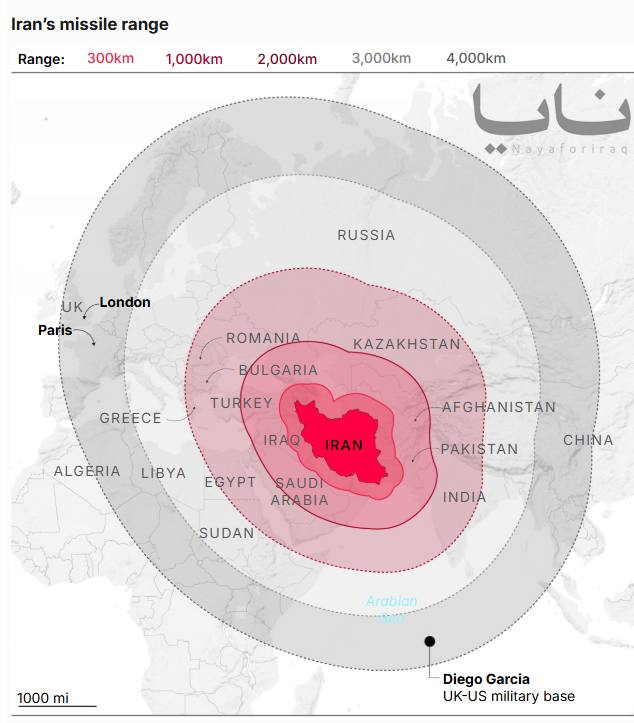 >Daily Mail: Defense experts fear that Iranian missiles "could hit Europe", following the launch of two ballistic missiles towards Diego Garcia, where reports indicate that one of them failed in mid-air and the other was intercepted.is any of this believable? If the source is DM, it's 100% lies.