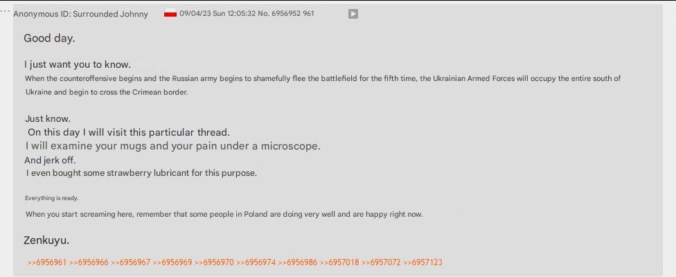 >>531279367Theyre funny creatures. Unfortunatelly almost all of them gonna die a very painful death on the battlefield anyway, their pig squeal doesnt really have meaning outside of them wasting their free time on online forum for gooners and tranniesI was hoping eurotards will understand that they invested in literally the most corrupted shithole in Europe, now all their money are gone, but they still hoping for something. The centralization in Russia is one of the most stable in all across the globe and FINALLY our government get that eu alliance is dying and theres nothing to gain from trying to act friendly with them. You can try doing terror attacks, buying media etc, but at some point the society of any country will just adapt, same like Japan did in isolation for centuries or modern Iran/Afghanistan