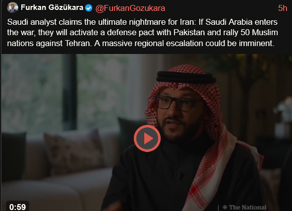 saudi arabia tries to deter iran with a pakistani defense pact vis a vis iran saudi arabia has zero deterrence and if iran burns saudi arabia will burn also as the enable and american protectoratehttps://xcancel.com/FurkanGozukara/status/2035297512815251919#mdid MBS go into this thinking he had a royal flush?