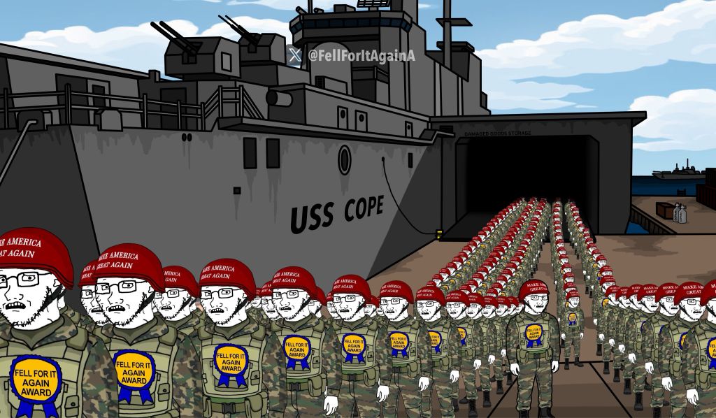>>531282796Muslim cope is endless.>Trump over the weekend requested U.S. partners in Europe and Asia send warships to help police the strait, where roughly one-fifth of the world's oil supply is caught in the crosshairs of the U.S. and Israeli war with Iran.>No country has publicly announced plans to send ships or other kinds of assistance to unblock the strait.https://abcnews.com/Politics/trump-blasts-nato-after-allies-rebuff-call-reopen/story?id=131113988