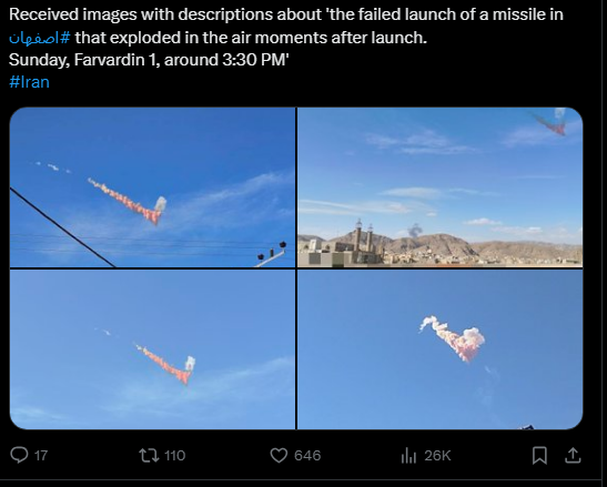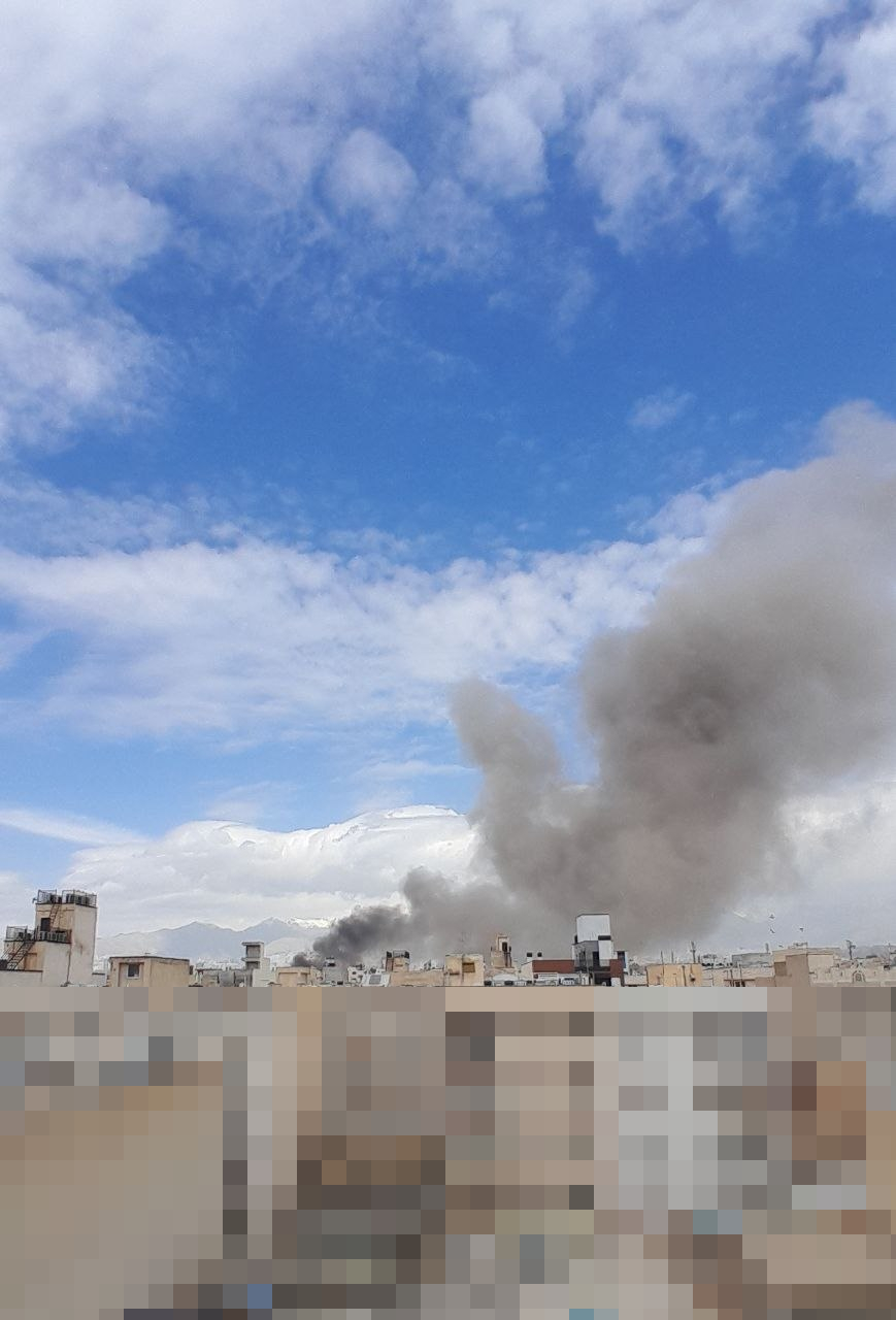 >Received photo with caption: 'At 10:30, four [missiles] hit the Air Force barracks (Hammer) in east #TehranOHMYTEHRAN