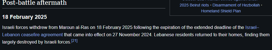 >>531282766yea, I wonder why its an 'older version', dumbass. Also it literally says on that page why they withdrew. May I remind you that after the ceasefire of 2024 Israel was killing Hezb operators every day without Hezbollah retaliating at all? That was the deal lmao. Plus IDF still had five outposts in south Lebanon at the timecope more thirdie