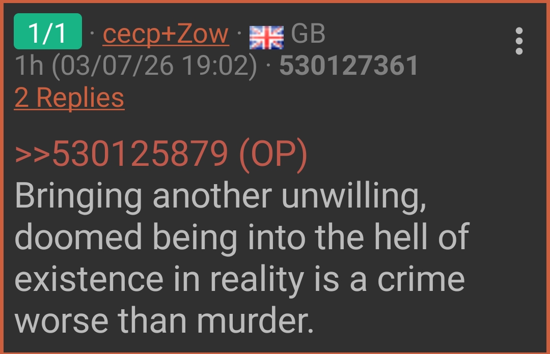 >>531280400It's immoral to reproduce on this world. don't worry about the birth rates.