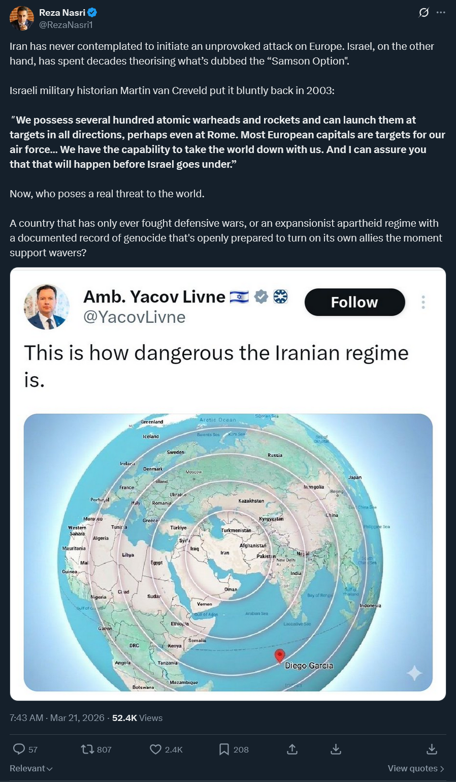 Why are they trying this lame narrative claiming that Iran 'can' hit Europe, mere days after Europe has basically told Israel and the US to fuck off and not involve them? It's like saying Iran can attack Tajikistan or some shit.