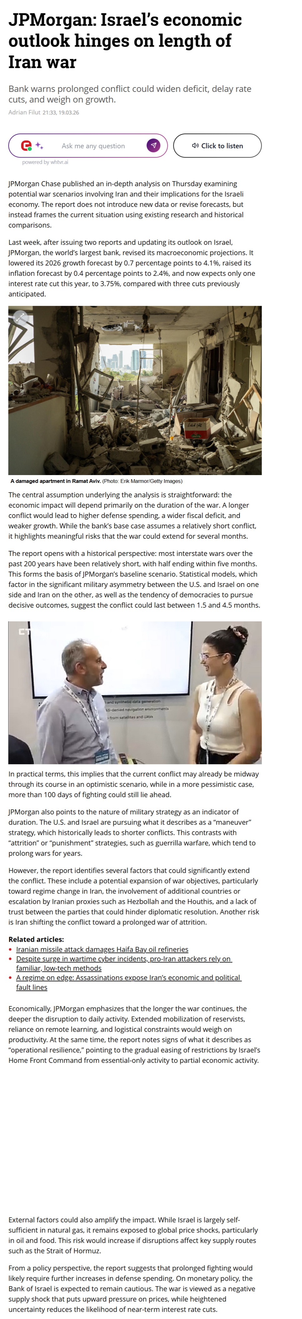 >>531285032The central assumption underlying the analysis is straightforward: the economic impact will depend primarily on the duration of the war. A longer conflict would lead to higher defense spending, a wider fiscal deficit, and weaker growth. While the bank’s base case assumes a relatively short conflict, it highlights meaningful risks that the war could extend for several months.The report opens with a historical perspective: most interstate wars over the past 200 years have been relatively short, with half ending within five months. This forms the basis of JPMorgan’s baseline scenario. Statistical models, which factor in the significant military asymmetry between the U.S. and Israel on one side and Iran on the other, as well as the tendency of democracies to pursue decisive outcomes, suggest the conflict could last between 1.5 and 4.5 months.