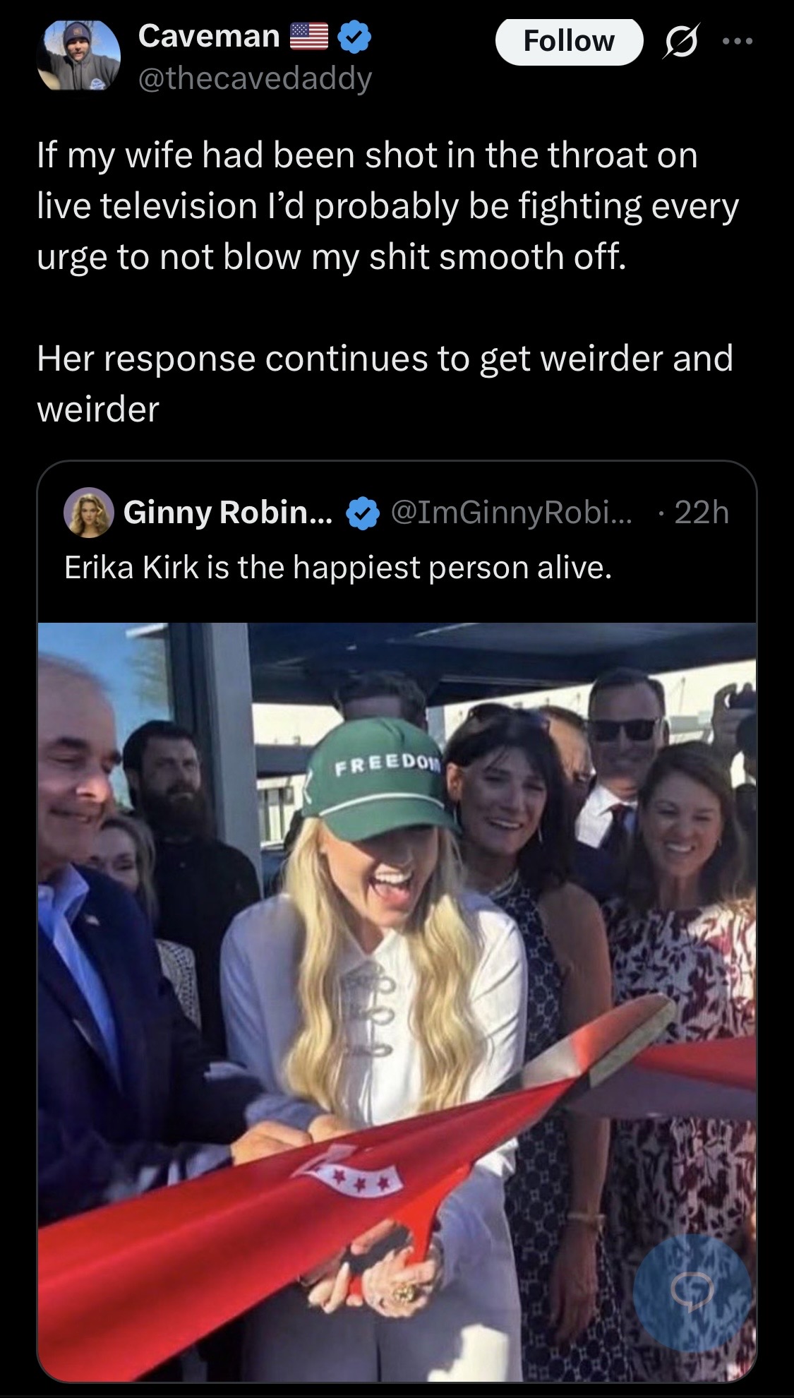 >>531283034the only people who cares about erika kirk being happy are ugly liberal women who are miserable as shit