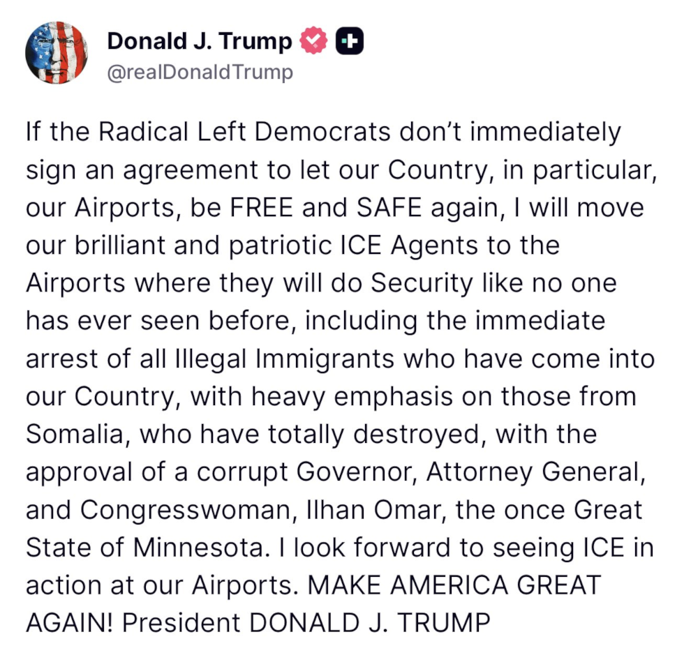 ayyy got damn democraps are threatening USA security by withholding $$ from TSA