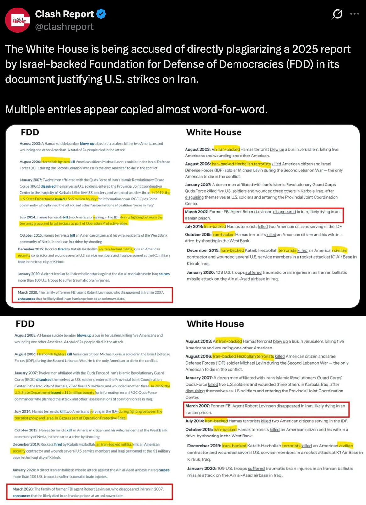 [BREAKING] The White House has been caught copy-pasting an Israeli think tank report to justify airstrikes on Iran!!!! CALLING THE U.S. A COUNTRY THAT JUST DOES WHATEVER ISRAEL TELLS IT TO DO IS NO LONGER A JOKE!!!
