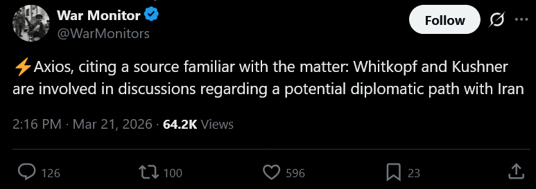 >>531299530Peace talks don't exist until Iran confirms they agreed to negotiate.