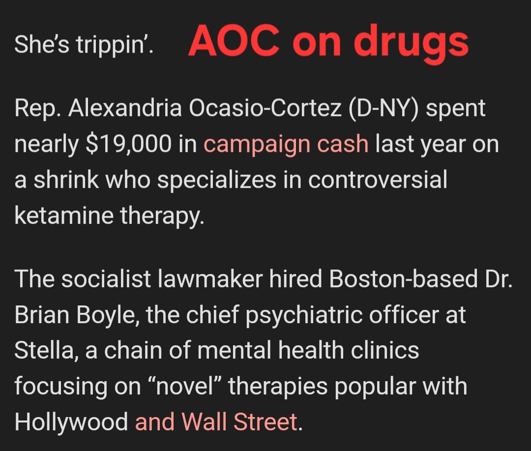 That crazy loopy jewish communist democrat, AOC is on drugs.I would be surprised if she wasn't on drugs.