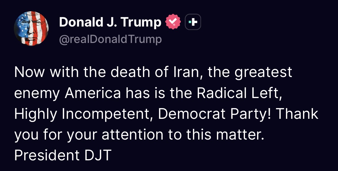 Trump boxed himself Even further. Less than 48hrs before we know if he is full of shit or if he commits a genocide in the middle east. Iran is not surrendering anytime soon drumpfies.