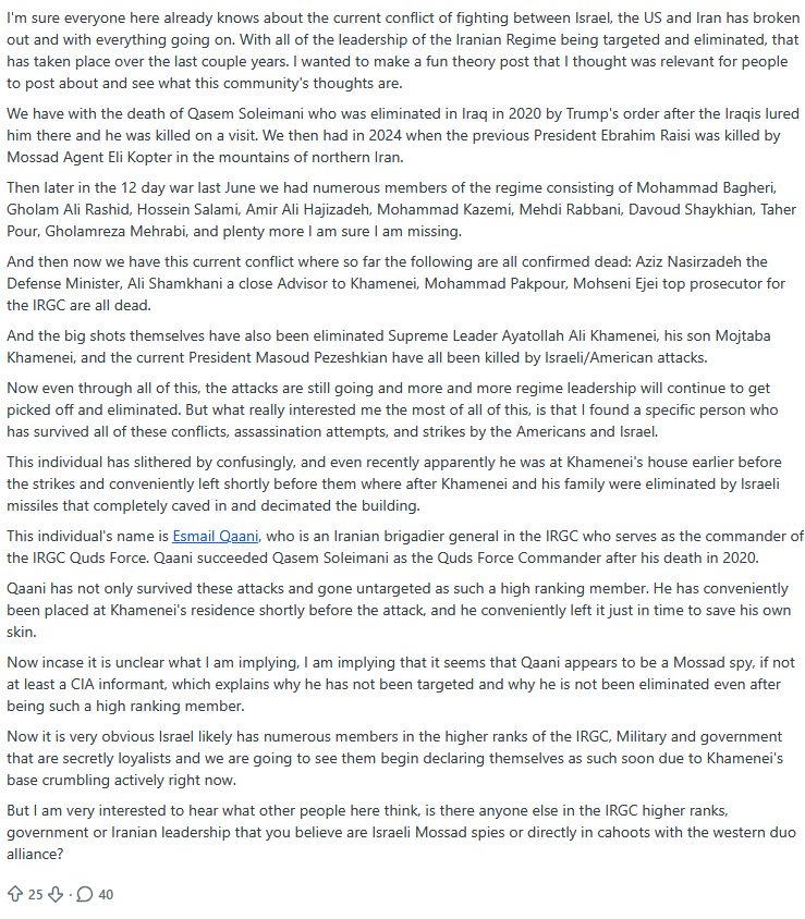 >>531367664>embedding with the higher levels of Irans government may have been pointless because it was an accidental smoke and mirrors where there was an entire command structure with the IRGC and whoever else alreadyI think that part is cope - having agents within high level of their govt. is incredibly valuable.and in general - israel is democratic and has access to basically the whole world market - so they can adapt much faster - the IRGCS cyber unit got nothing on israeli equivalent