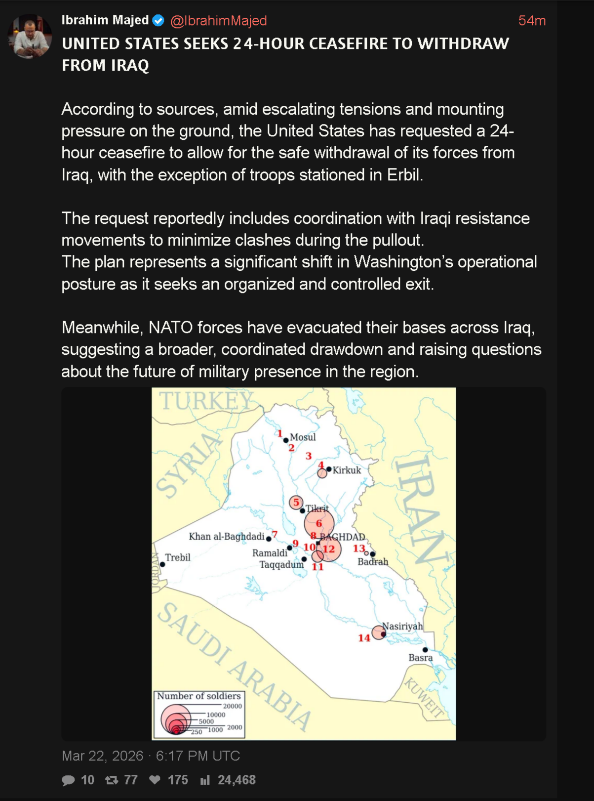 >>531373603They won't get it. The Iranians know full well the Israelis will just use a ceasefire to get in free bombings. US troops cannot even legitimately raise the white flag anymore because of how low Israeli has sunk the reputation of western armies.They're just going to have to make a run for it in MRAPVs all the way to Jordan, Saudi, or Turkey. Personally I would just grab a tarp, water, and get on a bike. Even the Shaheds wouldn't bother you.