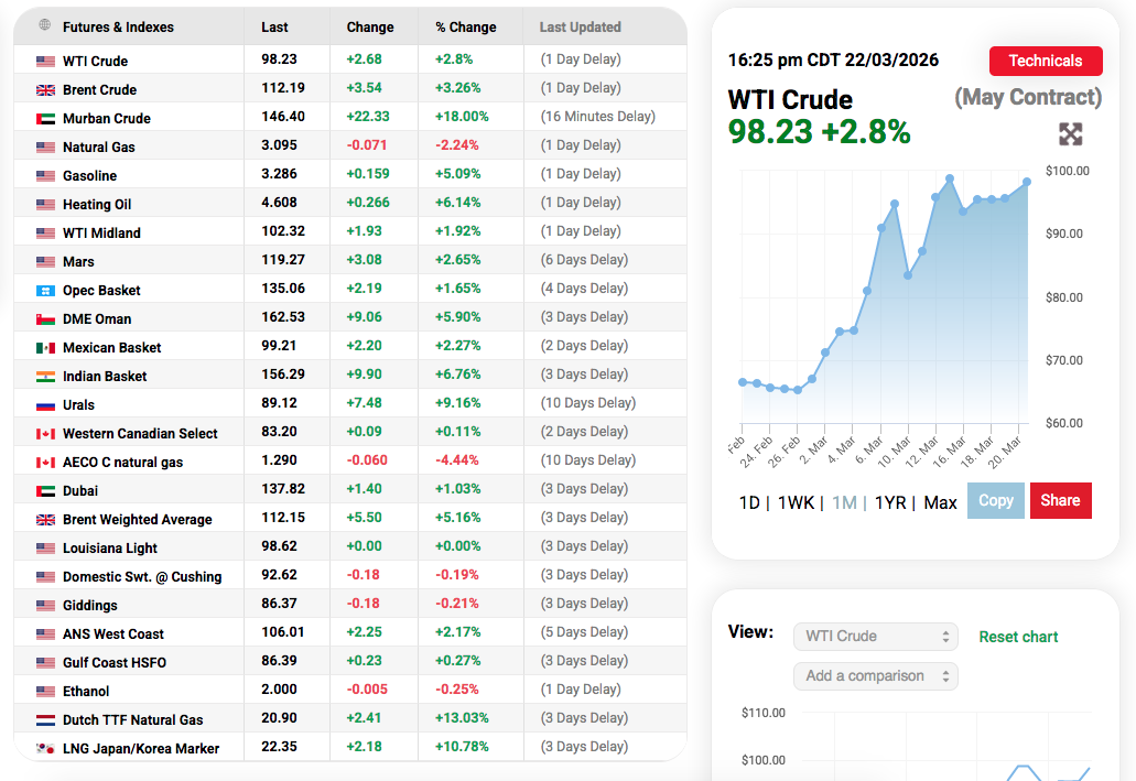 unchanged, $98 https://www.investing.com/commodities/crude-oil