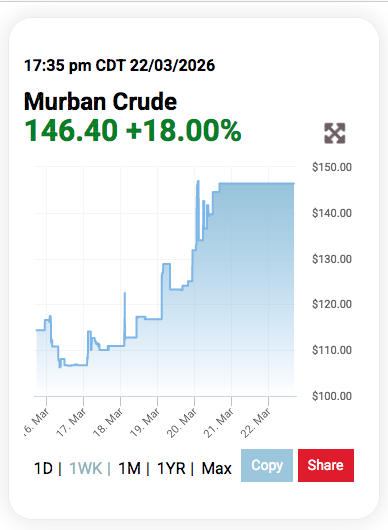 UAE oil production is fucked. Murban crude spiked so much it broke the chart.