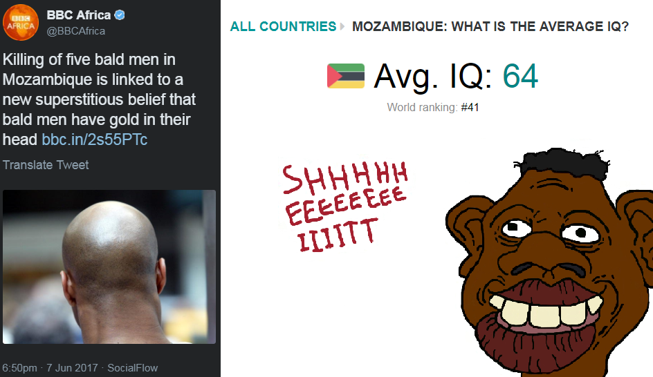 >>531406056Rhodesia 2.0The only thing currently wrong with sub-S Afrika is (((anti-colonialism))) to weaken White western cuntries left the Afriniggers to pretend to run their own cuntries.Politically its like those YT vidyas where a 'smart' 80IQ Afrinigger makes a helicopter with planks for a rotor and a motorbike engine - it looks like a helicopter to retards but will never fly.