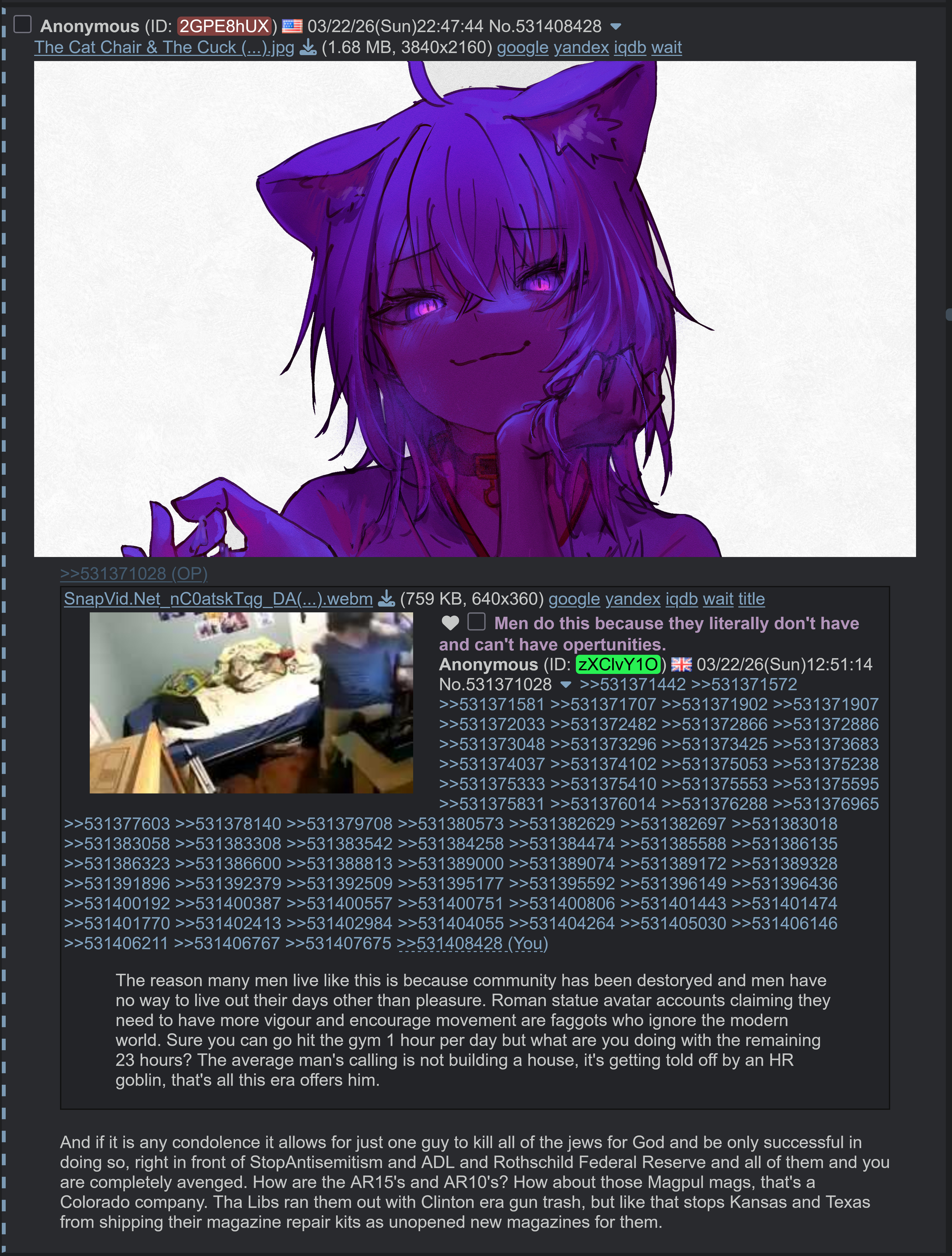 >>531413982>I can't answer any of what he said>I'll accuse him of being a jew or an indian!!!you're why the rest of the world hates us you dumb fucking zogcattle