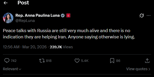 Is she dumb, a traitor, or simply a CIA ploy to keep stringing the russkies along that Trump's still open to compromise in the imaginary "Spirit of Anchorage" after already sanctioning Lukoil and Rosneft and continuing to arm Ukraine?
