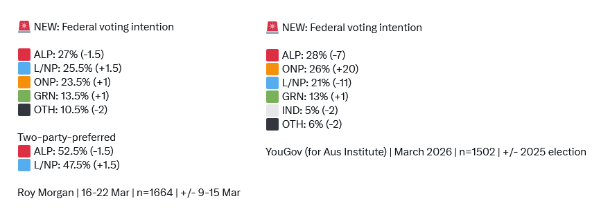 Early indication is that people are going to blame Labor for the petrol prices, Labor are going to blame the Liberal party for closing refineries. If they start attacking each other, ON will win big over the next few months.