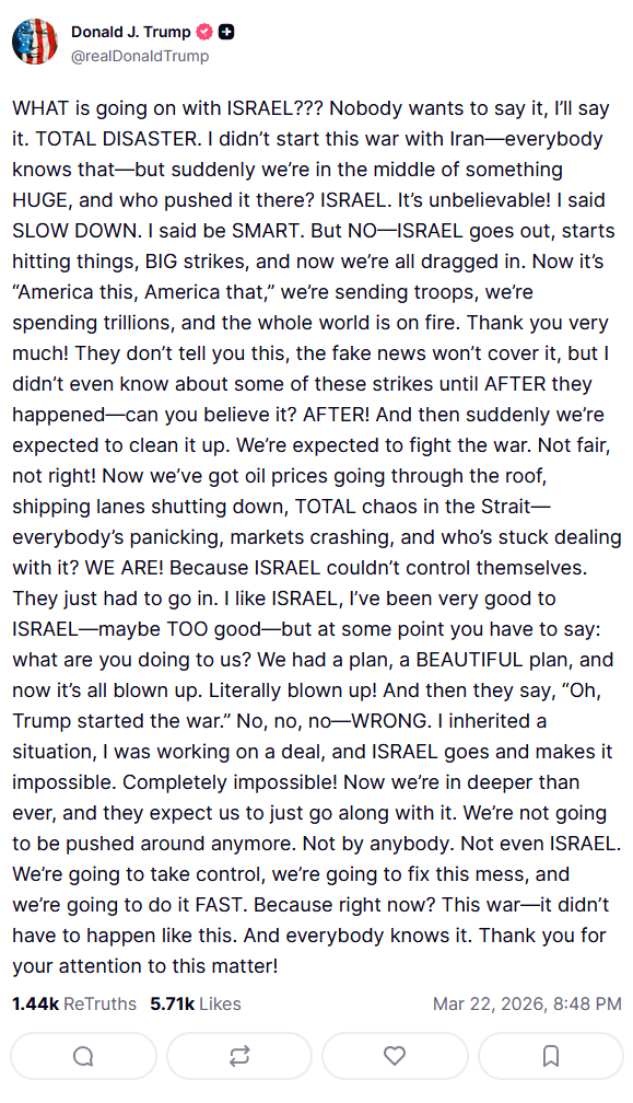 >>531418235why are the US and Israel allowed to fuck up the economy for everyone else on the planet? The second time they have done it in this decade.
