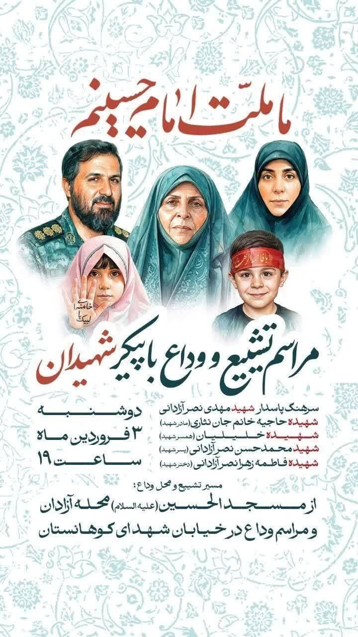 Mohammad Pakpour, Commander-in-Chief of the IRGCAbdolrahim Mousavi, Chief of Staff of the Armed ForcesAziz Nasirzadeh, Minister of DefenseHossein Jabal-Amelian, Head of the Organization of Defensive Innovation and ResearchReza Mozaffari-Nia, Director of Defensive Innovation and ResearchSaleh Asadi, Head of Intelligence, Khatam al-Anbiya HeadquartersMohammad Shirazi, Head of the Military Office of the Supreme LeaderMohsen Darrehbaghi, Deputy for Logistics and Support, Armed ForcesAkbar Ebrahimzadeh, Deputy Head of the Office of the Commander-in-ChiefGholamreza Rezaeian, Head of Intelligence, FarajaBahram Hosseini Motlagh, Head of Planning and Operations, General StaffHassanali Tajik, Head of Logistics Department, General StaffMohsen Mahdavi Kalateh, Deputy Minister of IntelligenceMajid Hosseinikandesar, Head of Finance, Lebanon Branch, IRGC Quds ForceAlireza Bi-Azar, Intelligence Officer, Lebanon Branch, IRGC Quds ForceAhmad Rasouli, Intelligence Officer, Palestine Branch, IRGC Quds ForceHossein Ahmadlou, Israel Desk Officer, Lebanon Branch, IRGC Quds ForceAli Hashemi, Deputy Coordinator, IRGC Saheb al-Zaman (Isfahan)Mohammadreza Saqafifar, Special Assistant to Ali KhameneiAsadollah Badfar, Head of Basij, General Staff of the Armed ForcesEsmail Dehghan, senior commander, IRGC Aerospace ForceNaqi Mohaddesnia, Head of Clergy Affairs, IRGC East AzerbaijanDavood Alizadeh, Commander, Lebanon Branch, IRGC Quds Forcehttps://www.youtube.com/watch?v=ef1P0lCgb-I