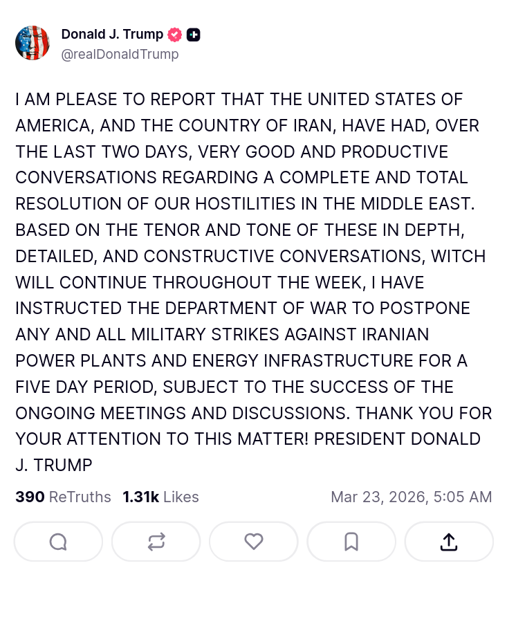 Wet Texas intermediate is down >Trump postpones attacking irans energy grid for five days due to progressive talks