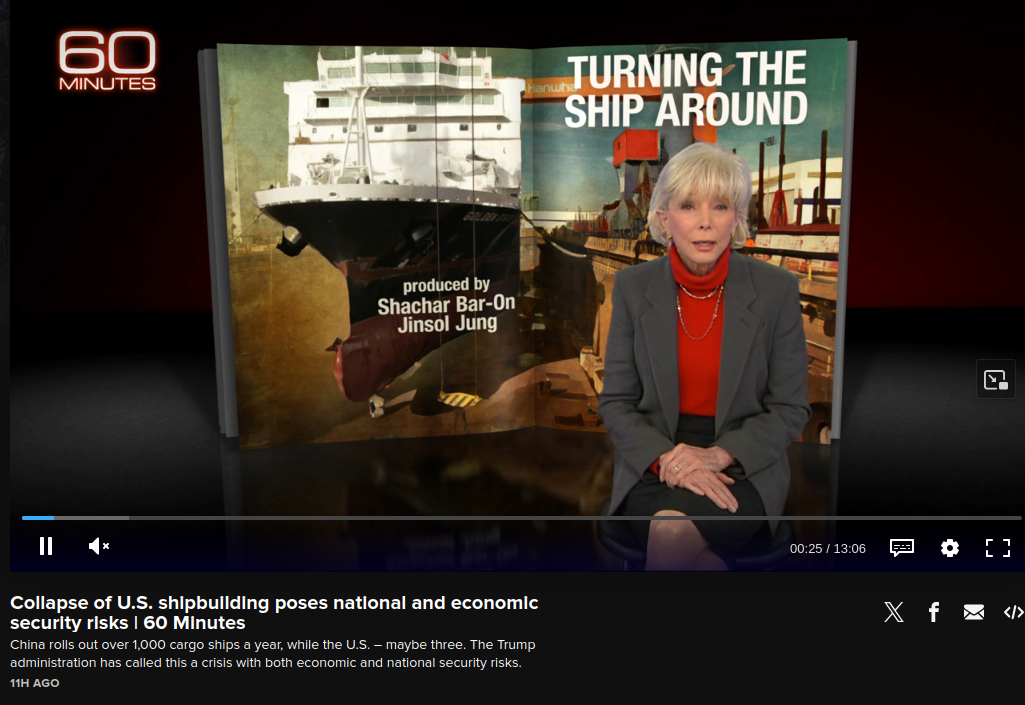 https://www.cbsnews.com/video/collapse-us-shipbuilding-60-minutes-video-2026-03-22/Novel methodologies were made available to DARPA which would allow for smelting of metals at room temperature and the creation of heat-treated high-strength metals using a single cooling cycle instead of several and this wisdom was ignored.When we literally have ways to melt metal at room temperature and they're ignoring it despite the supposed crisis in shipbuilding, they have no one to blame but themselves. Take a look at any of our three shipyards and you'll find them staffed entirely by blacks. Some of the laziest people on the planet are being relied upon for something critical for national security. We're seeing it at the Raytheon missile plant in Huntsville, Alabama, as well.60 Minutes also recently ran a story about how defense-LASER manufacturer AeroVironment was making LASER systems capable of shooting down rockets. I thought they might be interested to know that the LASER technology being used by AeroVironment and others is decades behind the times, but they ignored the tip.The U.S. is going to lose the first time it's seriously challenged and it's going to be its own fault. All of the things that are supposedly meritorious about capitalism e.g. rewarding people for having good ideas and using only the best ideas are no longer in practice and have not been in practice in 40 years.