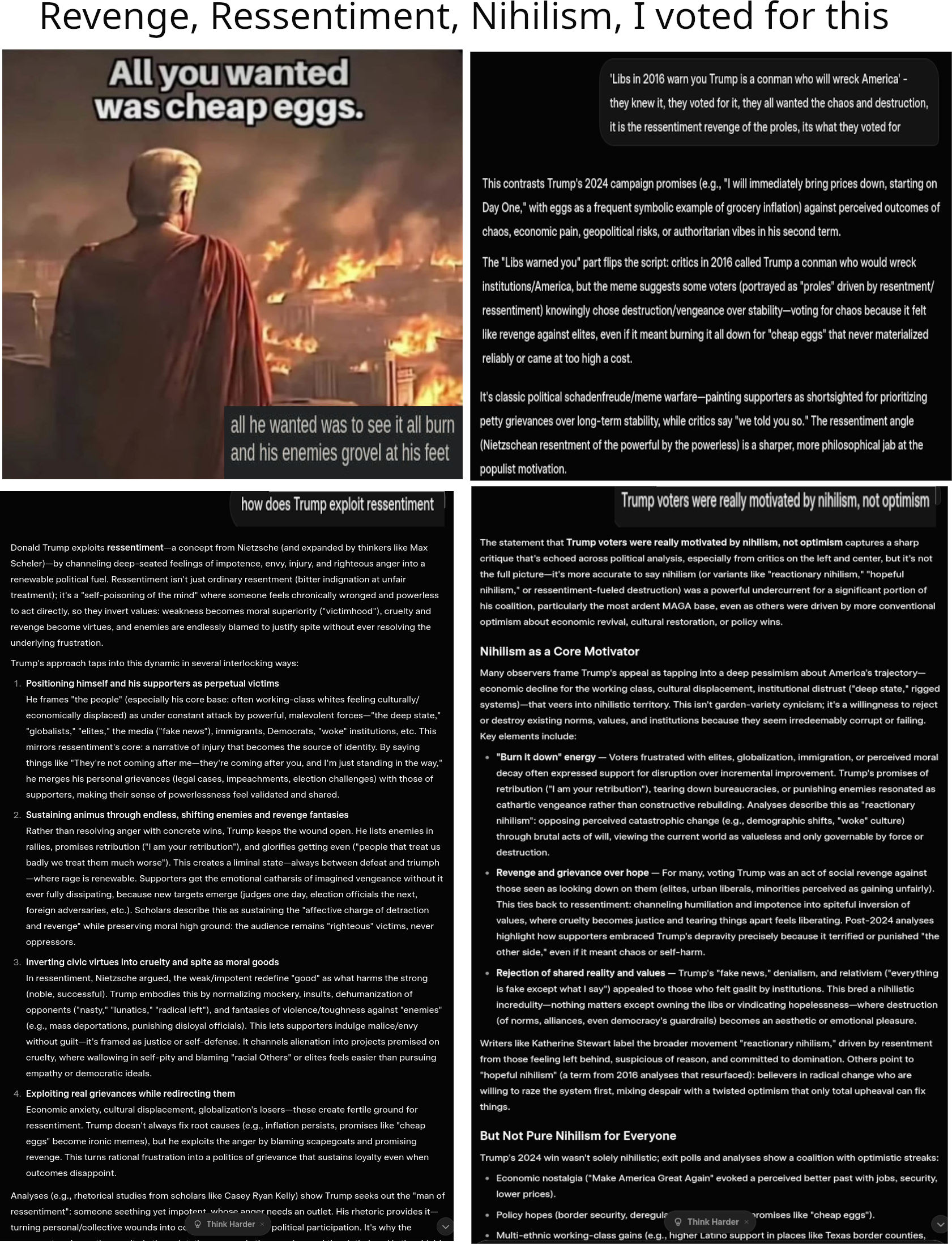 >>531434871You lost tranny. There's nothing you could say and nothing Trump could do that would make me regret not voting for Kamala. Take your mass immigration and DEI and shove them up your ass. Trump getting elected despite him being Trump shows you how much people are absolutely done with leftism.