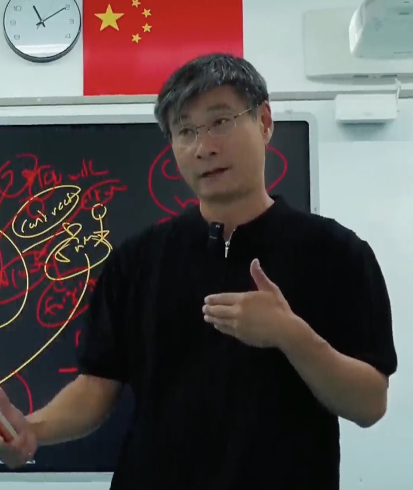>>531428868The joke is that this guy makes inane statements and then writes a random word from each statement on the whiteboard as he goes