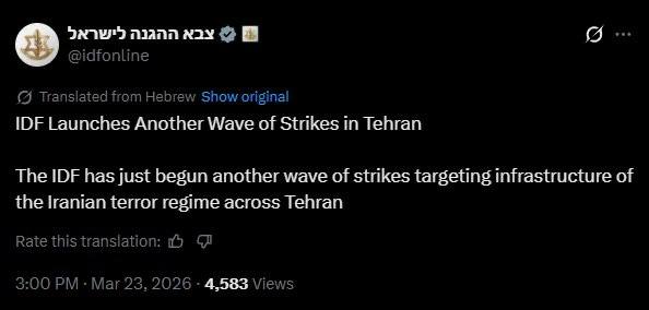 >>531431458This. If the US and Iran have productive talks and agree to a ceasefire, especially from the US making any strikes against Iranian electrical grid, Israel will just start targeting Iran's electrical grid to ensure the war continues.