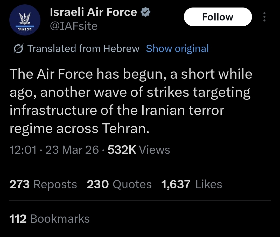 Will the benefits outweigh the costs in this conflict for us in the west? Doubtful, America's inability to protect allies has been shown to all, American equipment like the f-35 has been shown to be interceptable by goat fuckers as you put it, and for what? Nuclear threat? Bibis been claiming they have a nuke for over 2 decades, this has been a net negative for the US and even if they win after some long protracted conflict it will harm this empire for many years to come