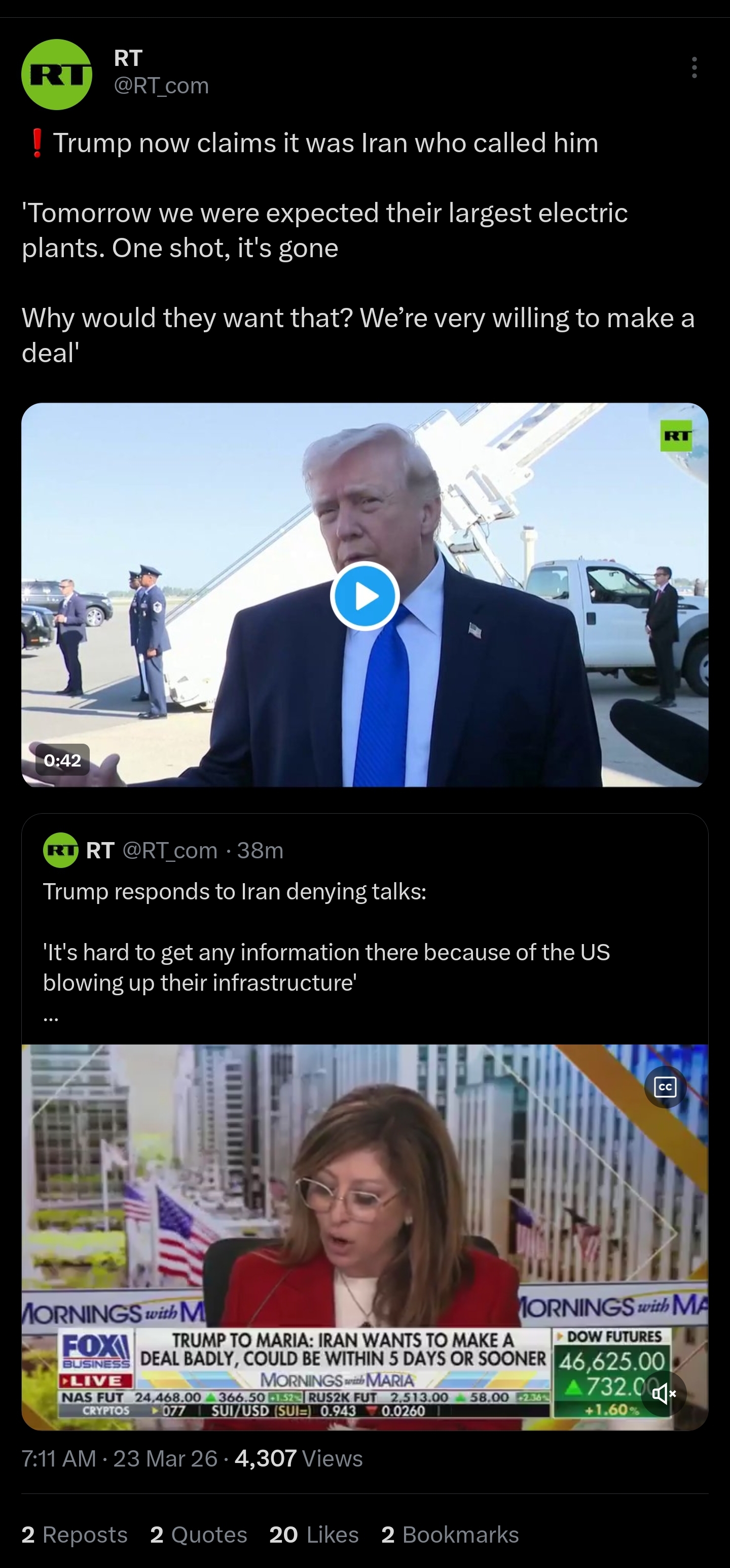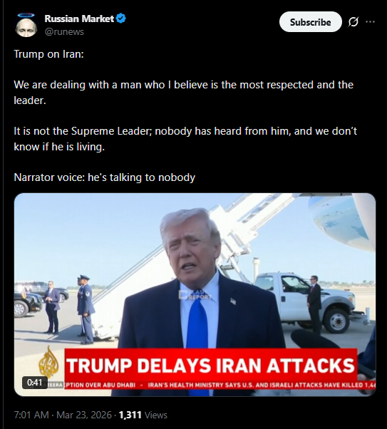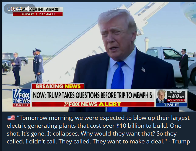 >>Trump postpones attacks on Iranian energy facilities for five days