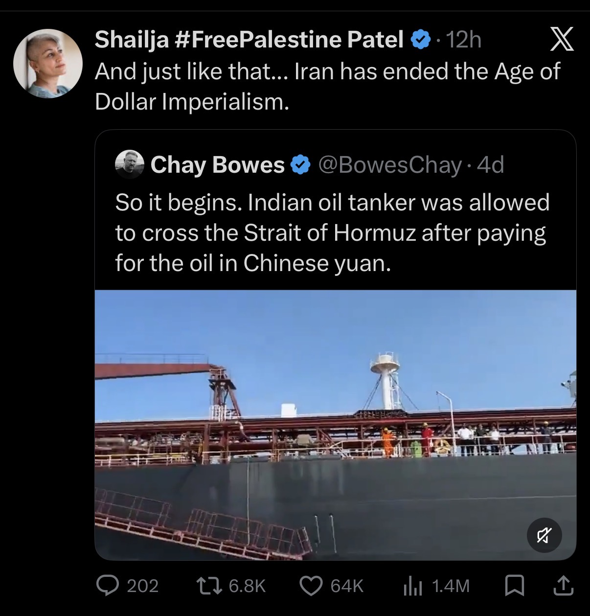 >>531436814Iran is allowing Chinese and Indian ships in regardless of the currency they use. They simply prefer the Yuan only because China is less aligned with the interests of the USA and will have less freezing issues.This isn't ending the US "petrodollar" people don't use the USD because of petro they use it as an international currency reserve for all trade (petro is a small fraction of international trade). The Chinese themselves often dump Yuan in favour of USD because the Yuan is too unstable long term and has less trade favourability. Chinese real estate debt is often denominated in USD.
