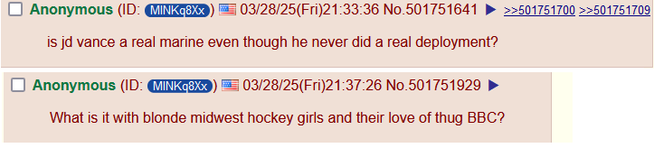 >>531437438>>531437491People like that hedge their bets, condemning President Trump to appeal to their gayper fans but then realizing later that they actually don't want to be frozen out from MAGA if things actually turn out okay. See, e.g., the same people who condemned Trump for the initial Iran strike last year, and then a week later, when Iran didn't do anything, they had to explain to their audiences, whom they told WWIII was at hand, why it didn't happen as they predicted.