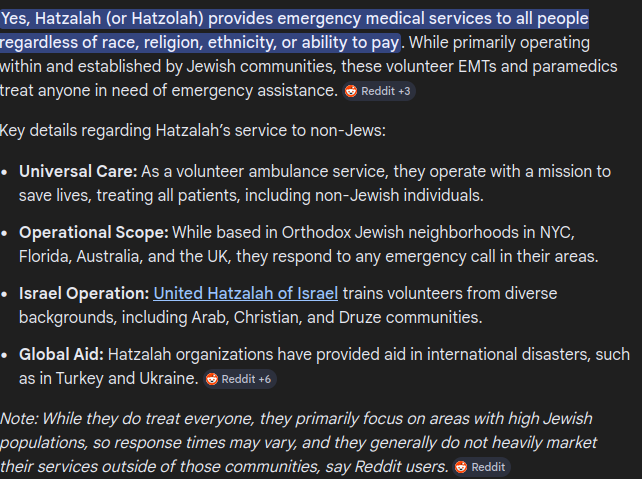 >>531444116They don't only serve Jews, but they only operate in the confines of where basically everyone is Orthodox. If you get into a car crash on a street where it's 80% Orthodox, they will come treat you, but if you are outside of the tiny areas they operate, they will just tell you to fuck yourself. You also need to call them directly and they only give their number out at synagogues. St Johns in comparison openly advertise on TV and literally will operate anywhere in the country you need them.
