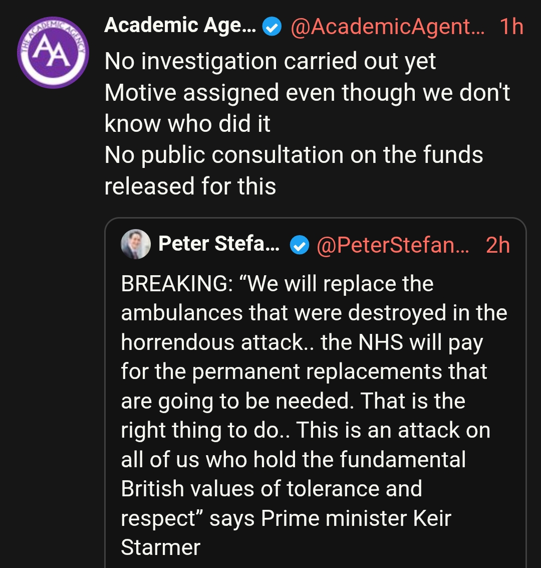 >Four Jewish ambulances set on fire in London in what health secretary calls 'sickening' attackhttps://www.bbc.co.uk/news/live/czj1m8xpk14t>Why did PM keep public in dark for 30 hours after Chagos strike? Tory leader accuses Starmer of 'a culture of cover ups' over Iran attack on US-UK basehttps://www.dailymail.co.uk/news/article-15669875/Why-did-PM-public-dark-30-hours-Chagos-strike-Tory-leader-accuses-Starmer-culture-cover-ups-Iran-attack-US-UK-base.html>Labour civil war looms as Mahmood dusts off Blair-era laws in bid to deport thousandshttps://www.express.co.uk/news/uk/2185275/deportation-migration-mahmood-blair-law-labour>Downing Street fears panic at petrol pumpshttps://archive.ph/WdMY1>Palantir extends reach into British state as it gets access to sensitive FCA datahttps://www.theguardian.com/technology/2026/mar/22/palantir-extends-reach-into-british-state-as-it-gets-access-to-sensitive-fca-data>Starmer to hold emergency Cobra meeting over Iran war after warning prices rises are ‘inescapable’https://www.independent.co.uk/news/uk/politics/energy-bills-iran-war-food-fuel-shortage-ration-b2943385.html>Streeting praises ‘Herculean efforts’ in meningitis outbreakhttps://www.standard.co.uk/news/health/wes-streeting-kent-students-university-of-kent-nhs-b1275966.html>Chief Constable: Valdo Calocane should have been arrested prior to Nottingham attackshttps://www.itv.com/news/central/2026-03-20/nottingham-attacks-inquiry-calocane-should-have-been-arrested-months-earlier
