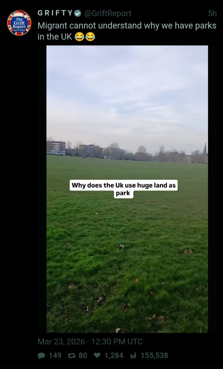 They kinnae into parkshttps://nitter.poast.org/GriftReport/status/2036057880655188452